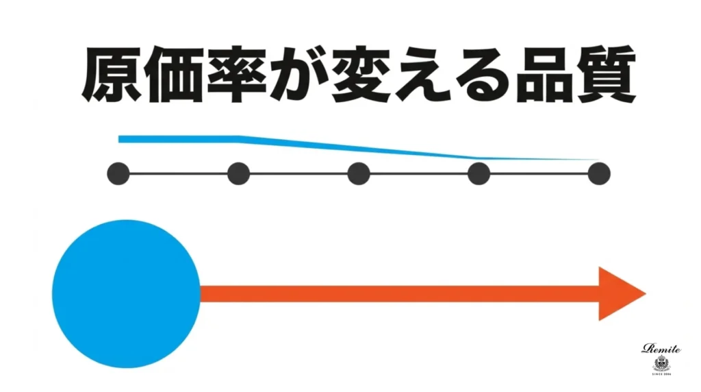 原価率 20%〜30%程度(広告費が多いため) 50%以上(素材と技術に全振り)