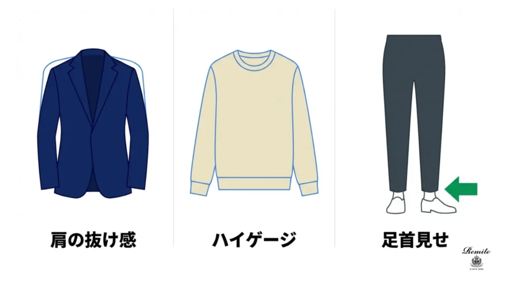 シルエット選びでは、ミリ単位の差が「こなれ感」を生みます。