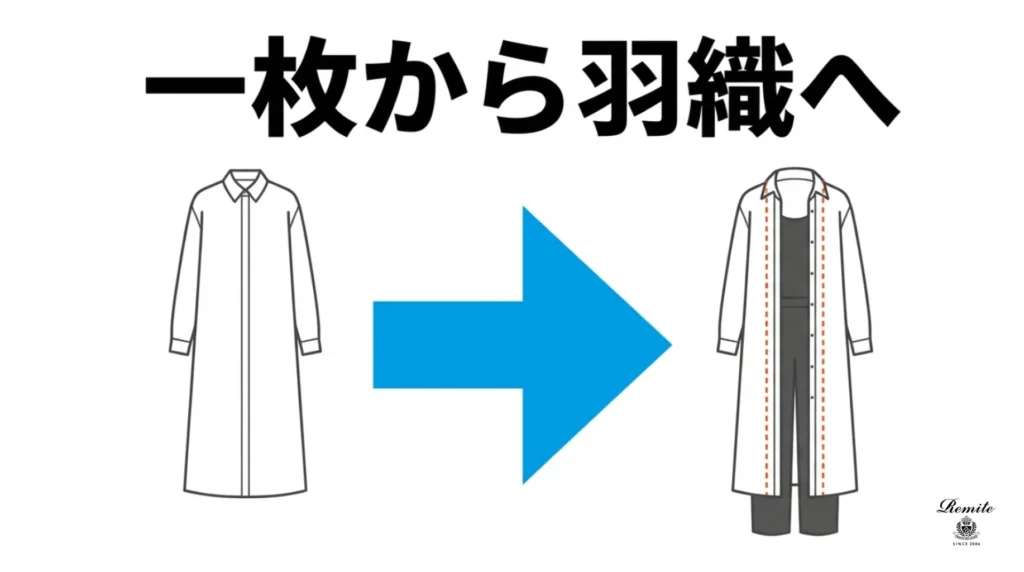 朝晩の冷え込みに対応する機能性はもちろんですが、羽織りものを一枚足すことで、ワンピース単体では作れなかった「シルエットのメリハリ」を生み出すことができます。