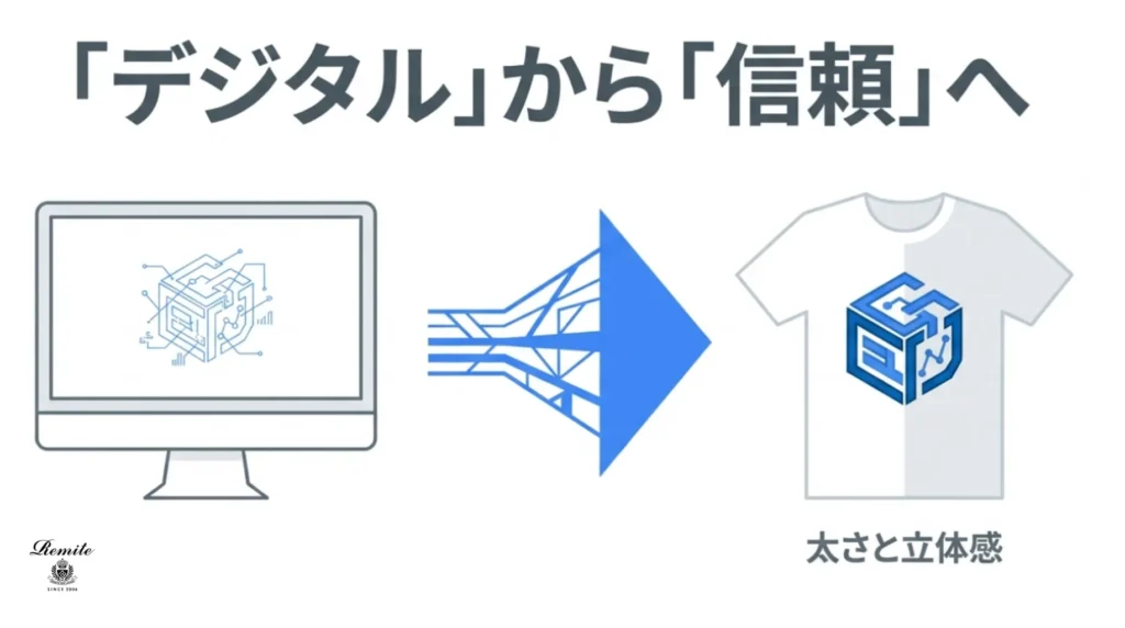 刺繍業者にデータを渡す際は、「刺繍用に少し線を太くする」や「細かい文字は省略する」といったデフォルメ(簡略化)を許容する柔軟性を持つことが、結果として美しいロゴに仕上げる秘訣です。