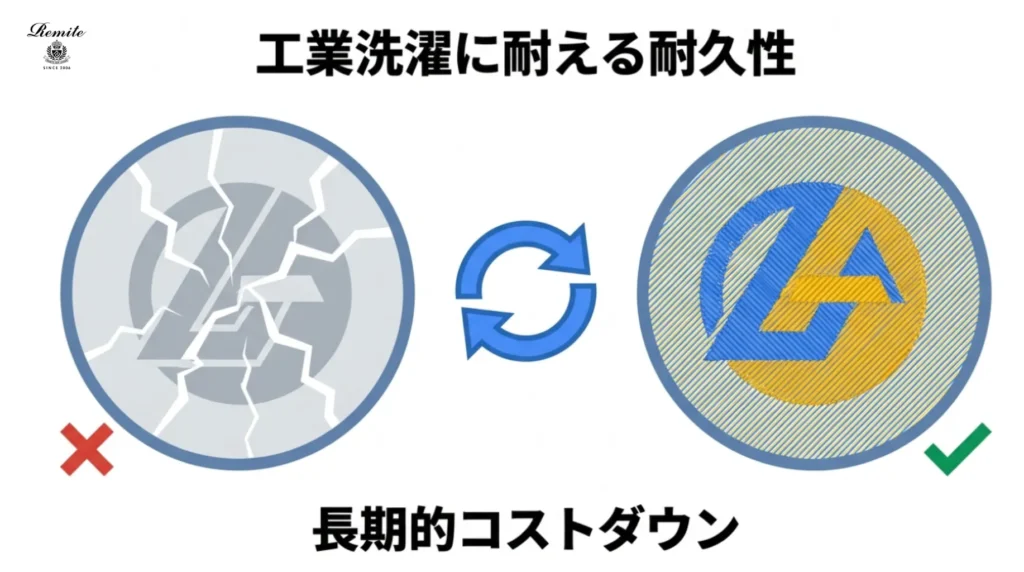 コストを抑えようと思えば、シルクスクリーンプリントや転写プリントといった安価な方法はたくさんあります。それでもなお、多くの企業や店舗が、手間もコストもかかる「刺繍」を選び続けています。